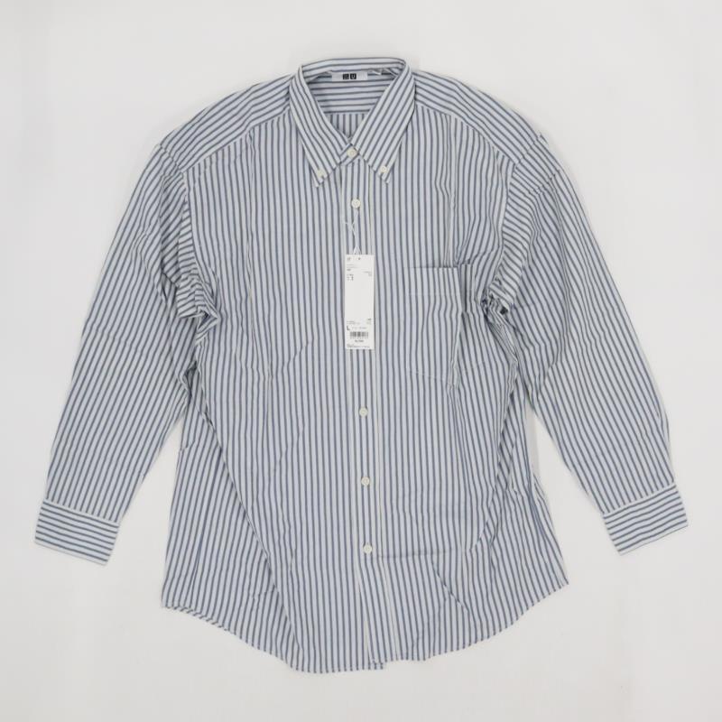 > ユニクロU ワイドフィットストライプシャツ(ボタンダウンカラー・長袖)Lサイズ