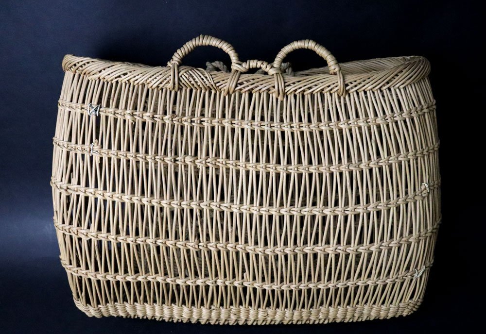 ・商品は 自然素材 煮柳弦編み/バスケット 収獲籠 手提 ハンドメイド/1点物 未使用保管品 です。
