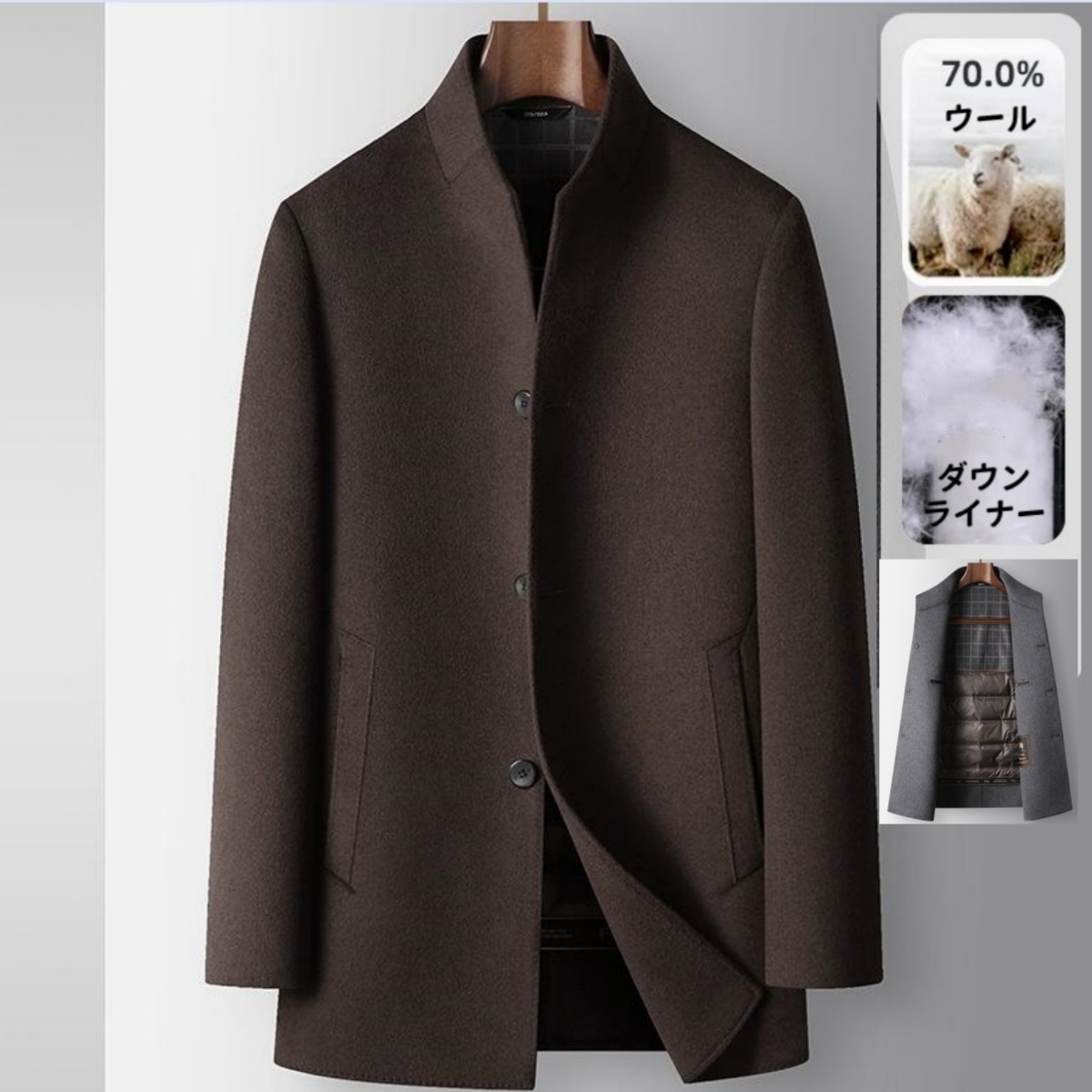> ダウンコート ダウンジャケット メンズ★新品 ダウンライナー ウールコート ビジネスコート ロングコート【KLN9688】珈琲色 3XL