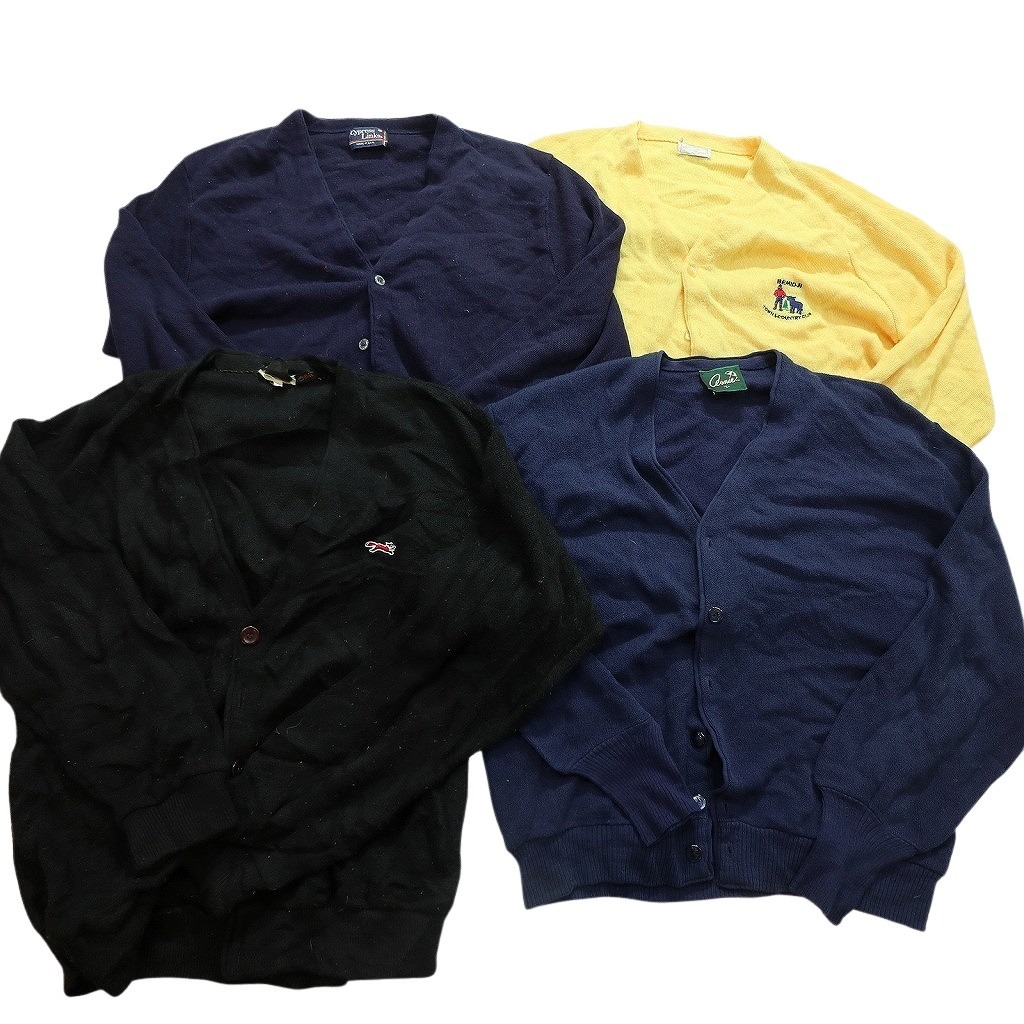 > 【訳あり】 古着卸 まとめ売り アクリル カーディガン セーター 21枚セット (メンズ ) The FOX ワンポイント ネイビー 中古 古着 WA3618