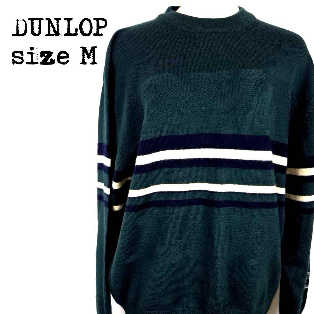 - DUNLOP ダンロップ ニットセーター Mサイズ グリーン系 ボーダー ウール