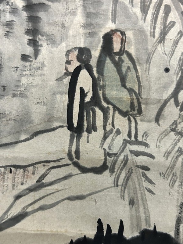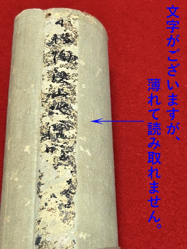 - ◇古筆掛軸(銘・印あり)平咸先生皿水圓 斗南題 【墨彩山水図「静謐なる山水」一幅長さ180cm × 巾34cm 木箱両面筆書付】落款有 Q10076