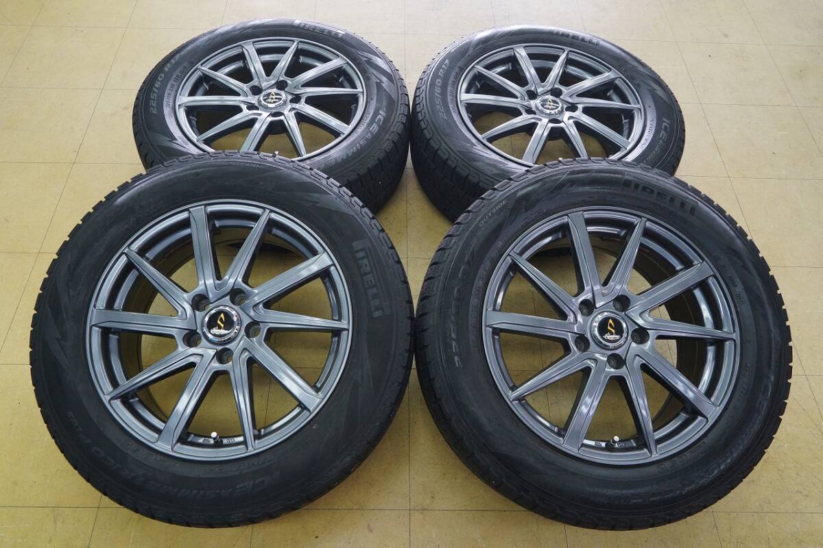 - 【中古 SET】225/60R17 ピレリ アイスアシンメトリコ プラス Septimo 5H114.3 7J+38 30系 アルファード ヴェルファイア エクストレイル
