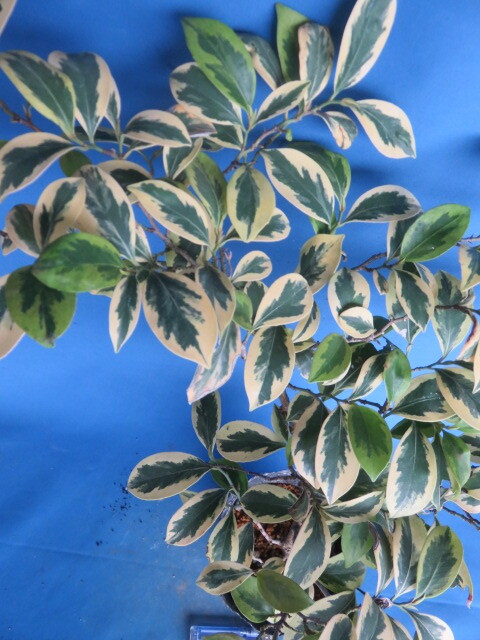 - 山野草 ① 斑入 樹木 覆輪 榊(サカキ) 常緑なので1年中斑入りが楽しめます