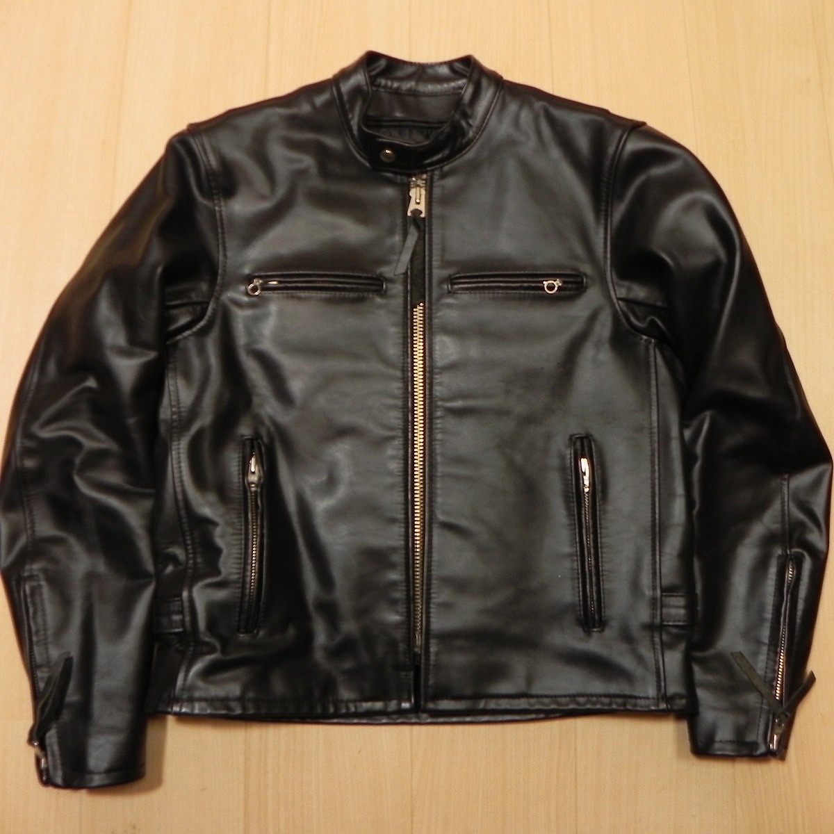 > ★ KADOYA カドヤ 脊髄パッド入り ハードステア シングルライダース L 革ジャン レザージャケット ライダース 黒 ブラック 牛革 古着 ★h
