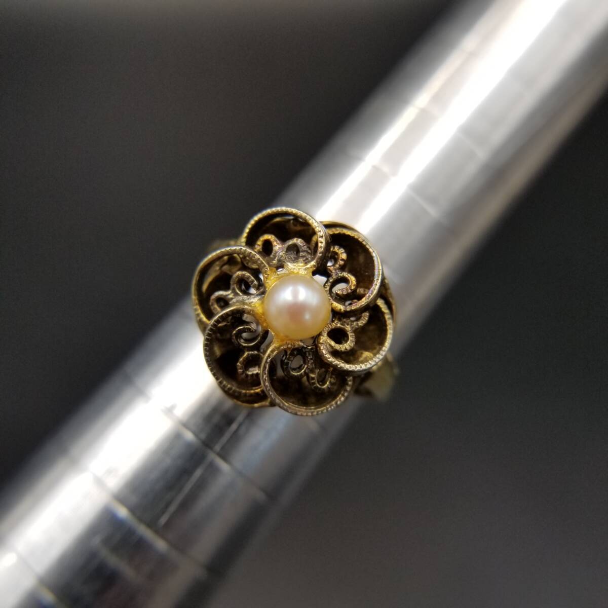 - パール装飾 お花 フィリグリー ヴィンテージ フラワー リング シルバープレート 指輪 クラシカル ゴールドトーン Y25-B