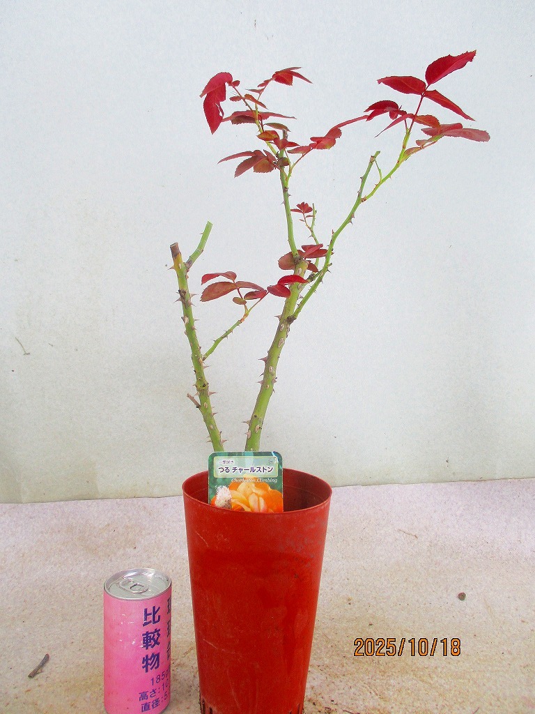- [野風苗木流通]蔓薔薇 チャールストン(101702茶丸プラ鉢)全高:52㎝※同梱包は「まとめて取引」手続厳守※120サイズ*送料明記