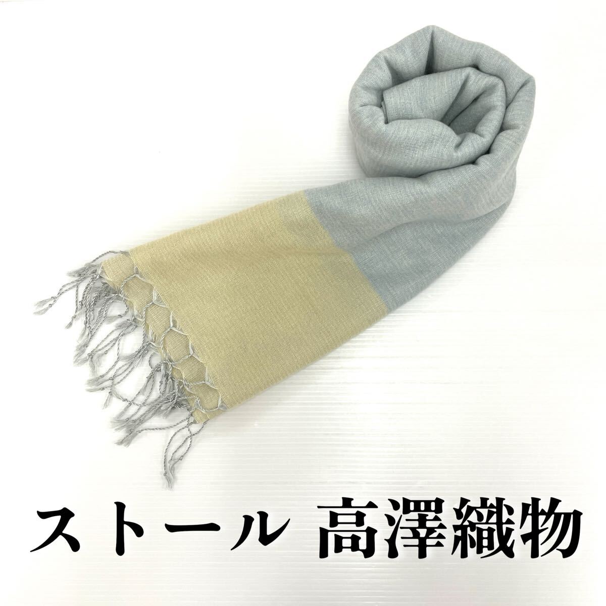 > 【ストール 高澤織物】未使用 カシミヤ? 秋冬 スカーフ ショール 肩掛け 水色系 黄色系 膝かけ 国産 日本製 防寒 #0263-739Z9
