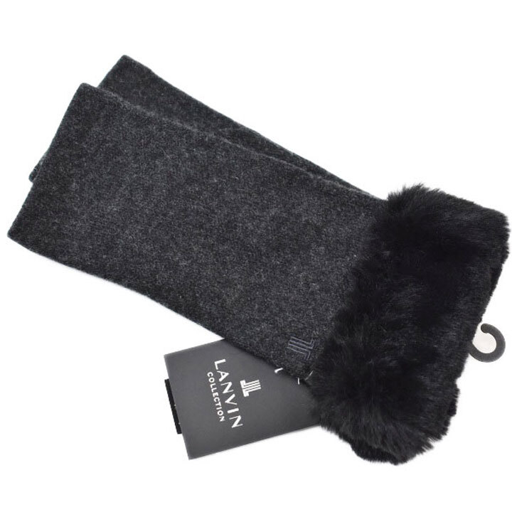 > 手袋 レディース ランバン コレクション カシミヤ100 フェイクファー チャコール 21~22cm フィンガーレス 女性