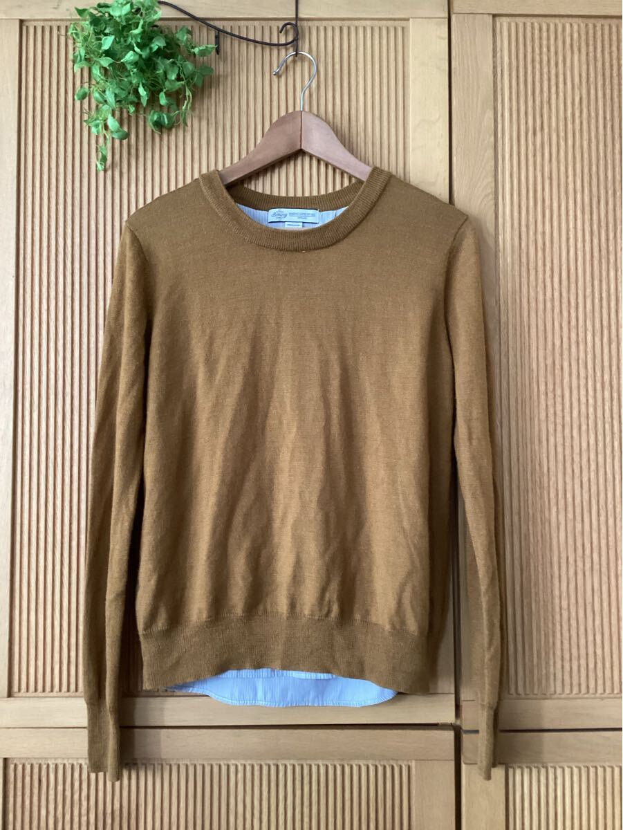 - B:MING LIFE STORE by BEAMS★レイヤード長袖ニット フリーサイズ ブラウス 重ね着風 ビームス ブランド 後ろスリット 茶色