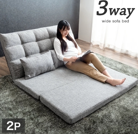 > ジェードグリーン 3way 超ワイド ソファーベッド 14段階リクライニング 2人掛け コンパクト ゆったり 大きめ 幅130cm ハイバック