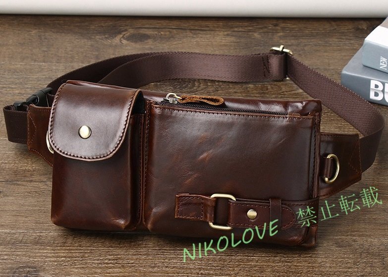 - ☆新品ウエストバッグ ボディーバッグ 2WAY ウエストポーチ 本革牛革 メンズベルトポーチ スマホポーチ ミニショルダーバッグ コーヒー