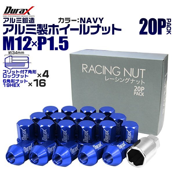 - Durax正規品 レーシングナット M12 P1.5 アルミロックナット 袋 34mm 藍 20個 アルミ ホイールナット トヨタ 三菱 ホンダ マツダ ダイハツ