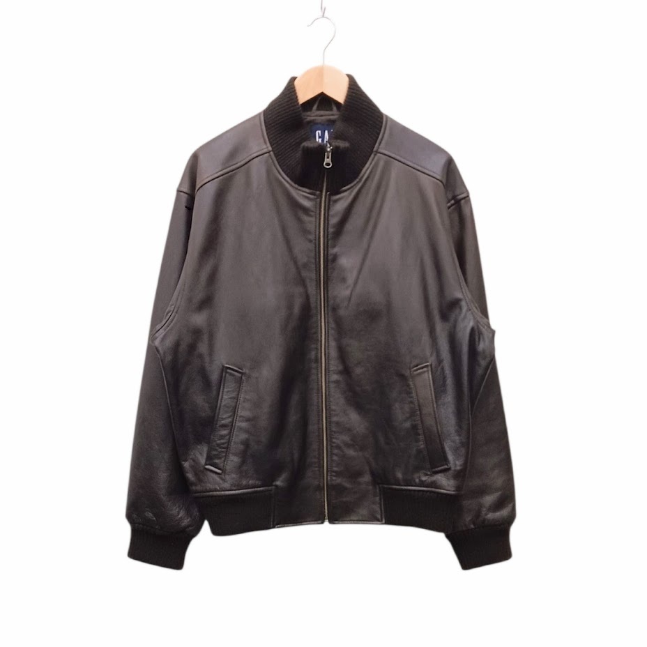 - GAP ギャップ リブ レザーブルゾン ジャケット 牛革 1166 ブラウン系 サイズ L