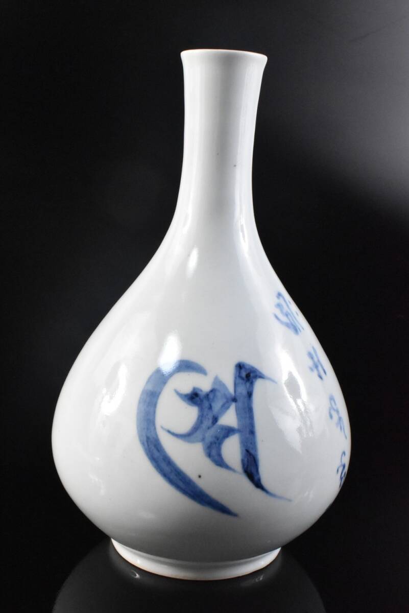 - 【雲】某収集家買取品 韓国 李朝 染付 漢詩絵付 花入 在銘 古美術品(花器花入) F8570