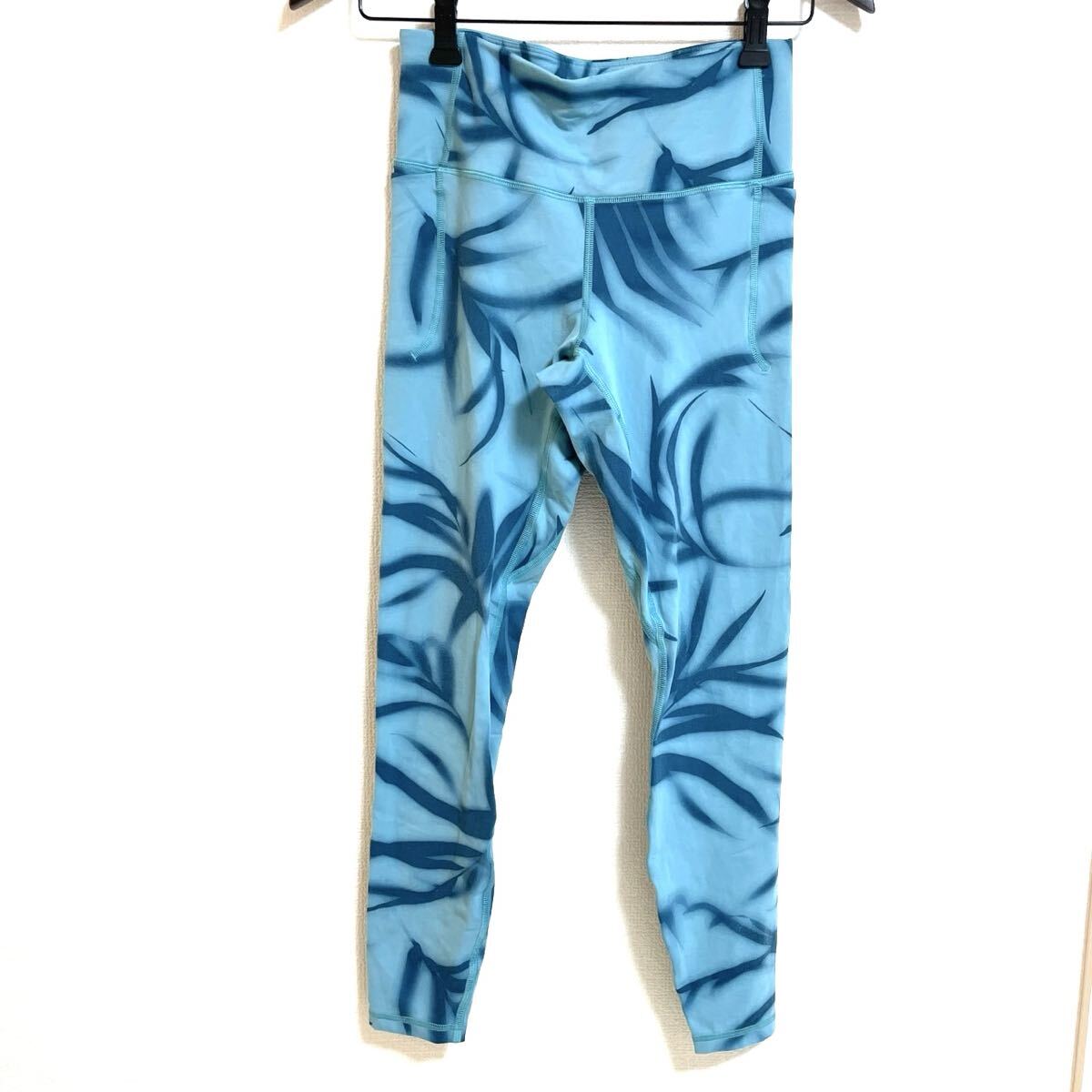 > 【美品】アンダーアーマー UNDER ARMOUR レディース M レギンス 吸汗速乾 伸縮 フィットネス ヨガ ランニング 青 ブルー柄 美脚 タイツ