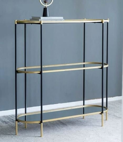 - 輸入家具 コンソール 3段シェルフ アイアン ミラー天板 飾り棚 シンプル モダン リビングスタジオ 直輸入 ゴールド 花台 AN-82960 送料無料