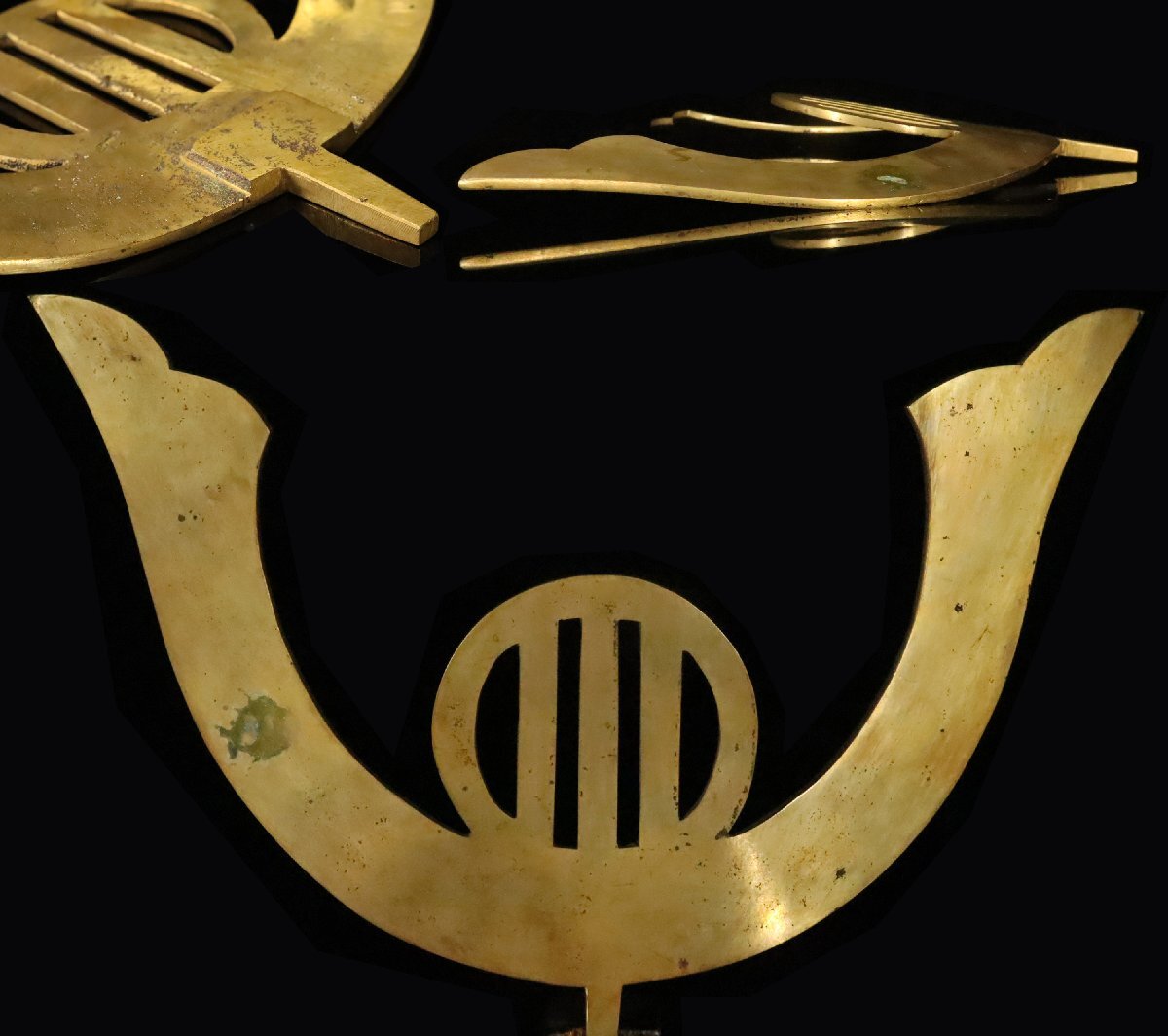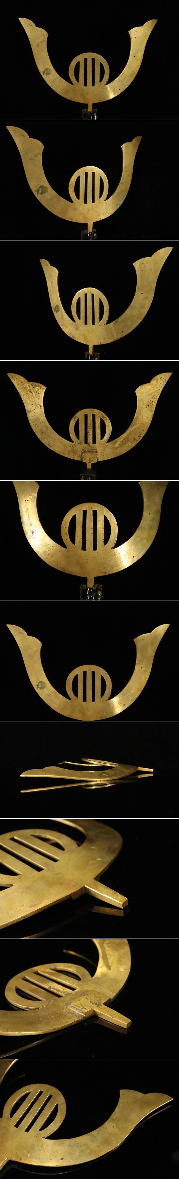 > 【ASAHI】江戸期 銅製 鍬形前立 彫刻 大型前立て 27.5cm 刀装具 鎧兜 甲冑 コレクター収蔵品[79226①r]
