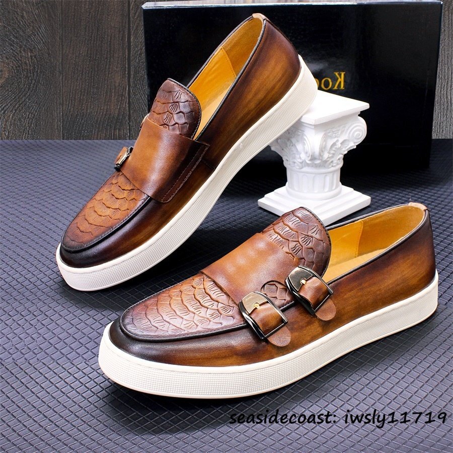 - 極美品◆ローファー 本革 職人手作り 鰐柄 ビジネスシューズ 高級牛革 スリッポン レザー ドライビングシューズ 革靴 新品 ブラウン 25.0cm