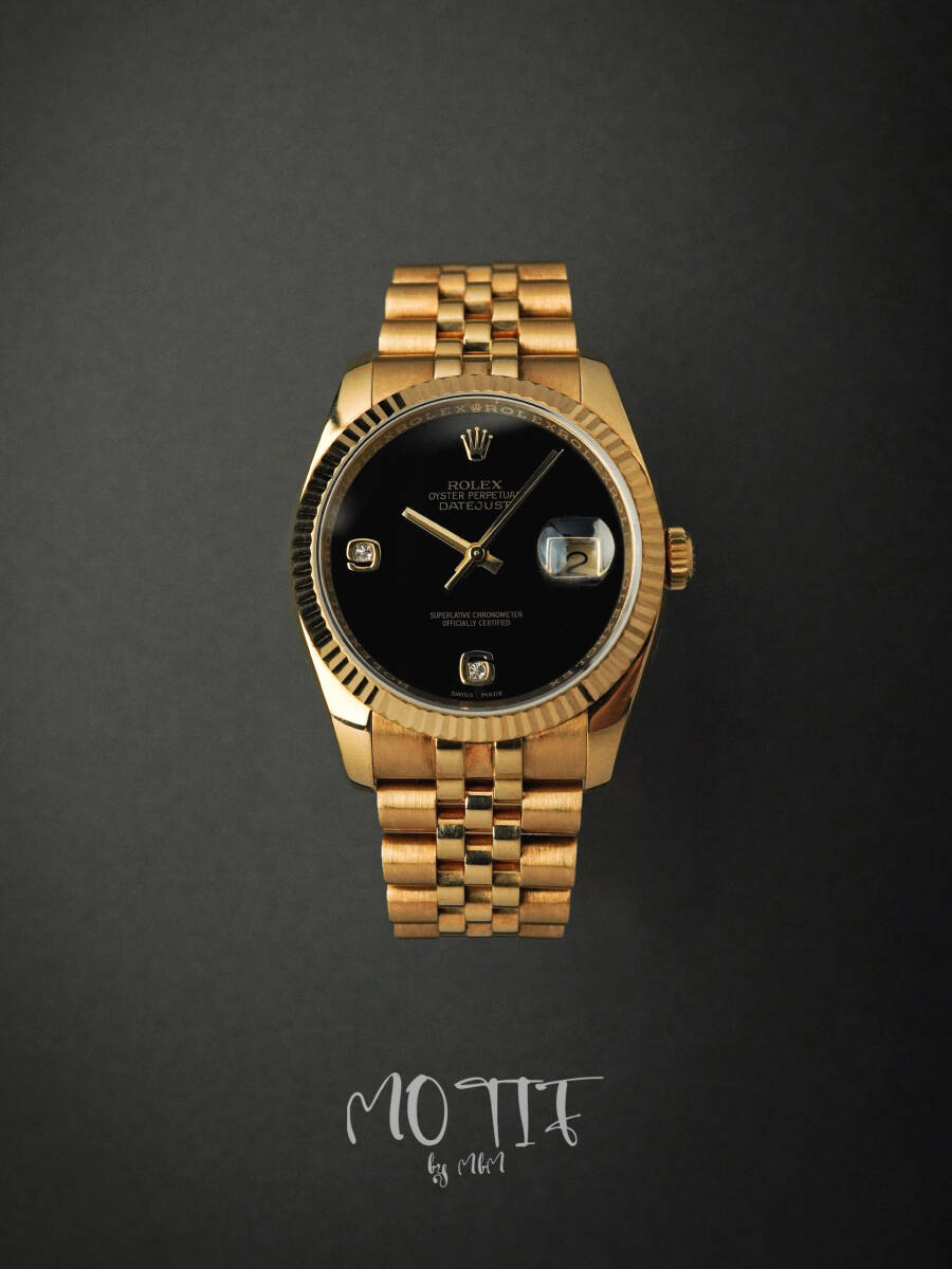 > 【金無垢 オニキス文字盤 2psダイヤモンド】ROLEX ロレックス デイトジャスト オニキス文字盤2ps ダイヤモンド イエローゴールド116238