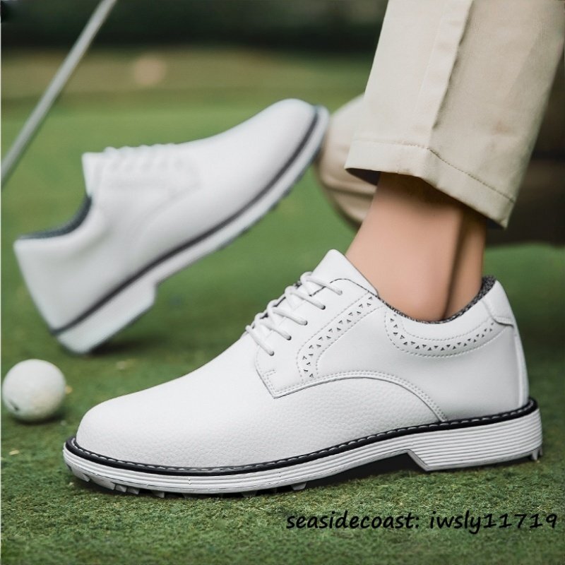 - 超希少 メンズ ゴルフシューズ イギリス風 通気性 高級品 スニーカー スパイクレスシューズ 超軽量 フィット感 防滑防水 ホワイト 27.5cm