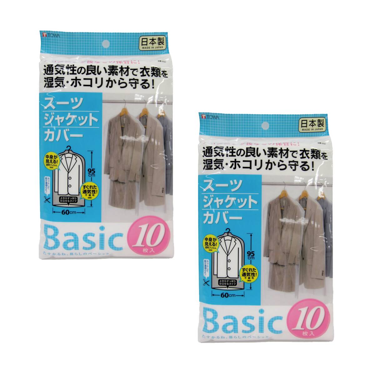 - 東和産業 衣類カバー BASIC スーツカバー 湿気・ホコリから守る 日本製 約60×95cm 10枚入×2個セット
