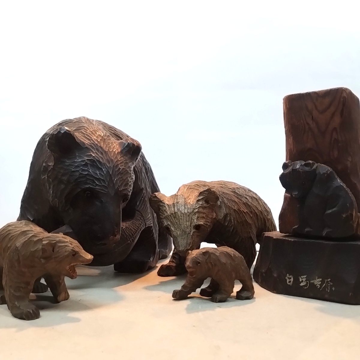 - 木彫りの熊 鮭くわえ熊 全部ガラス目 民芸品 農民美術 置物 伝統工芸 彫刻 工芸品 まとめて