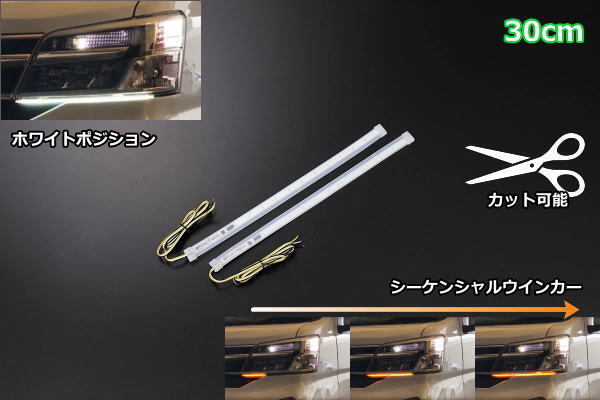 - 長さ30cm 12V車 汎用 LEDテープライト シーケンシャルウインカー デイライト機能 流れるウインカー 流星 LED 側面発光タイプ ネコポス発送