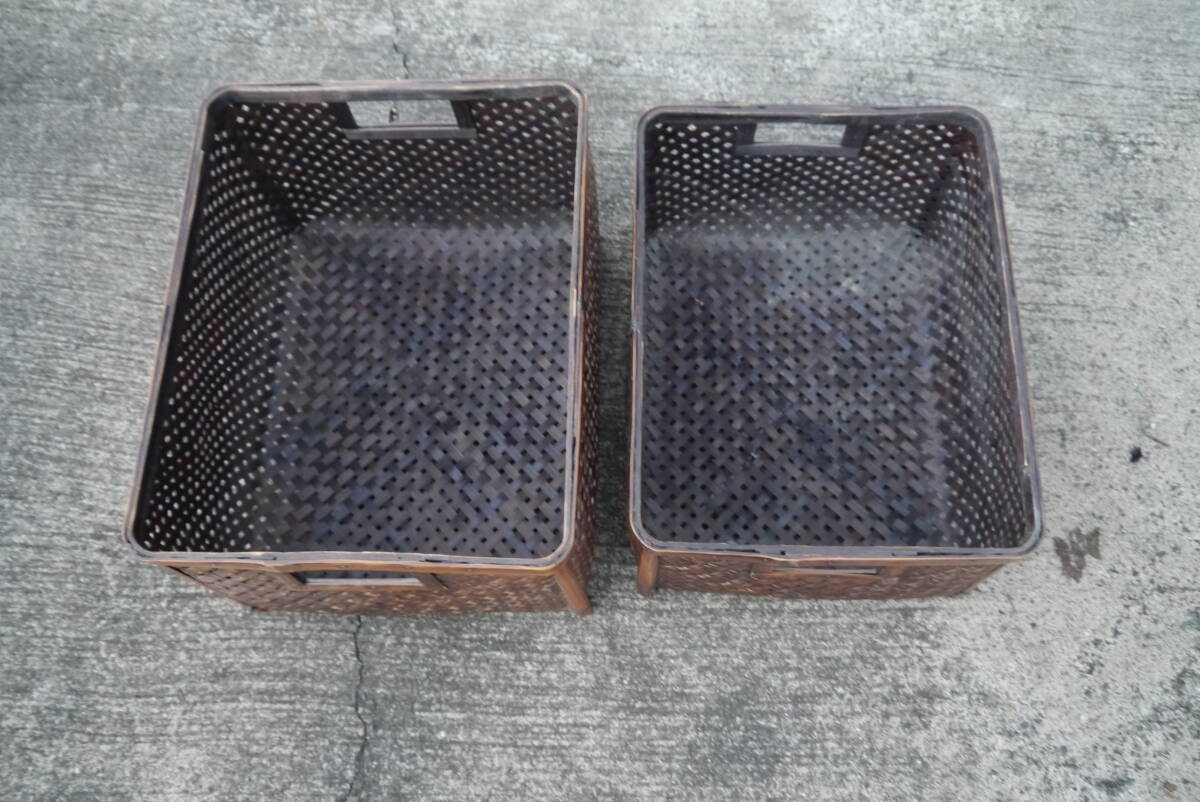 - ★【5Oct24 OF跳】竹籠 竹編み 収納籠 エ店舗什器 エスニック 2個セット