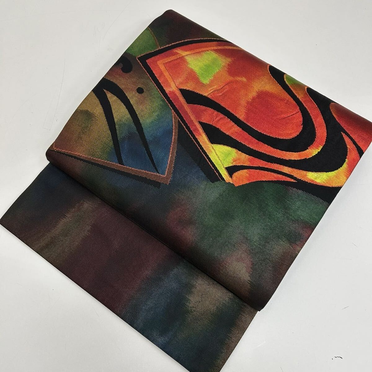 - 名古屋帯 扇子 モダンなデザイン 九寸 着物 正絹 W-5402