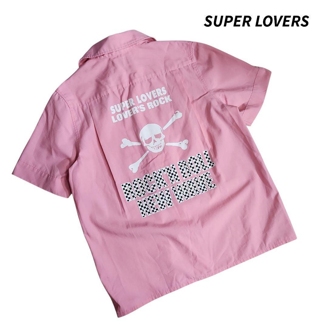 > SUPER LOVERS 刺繍&バックプリント・ルード系・半袖シャツ スカル ピンク Y2K ロカビリー 日本製68826