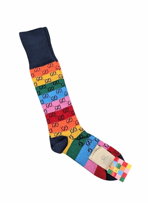 - 未使用 グッチ ソックス ハイソックス 柄 カラフル GG柄 24-26cm マルチカラー 靴下 コットン混 GUCCI 【中古】