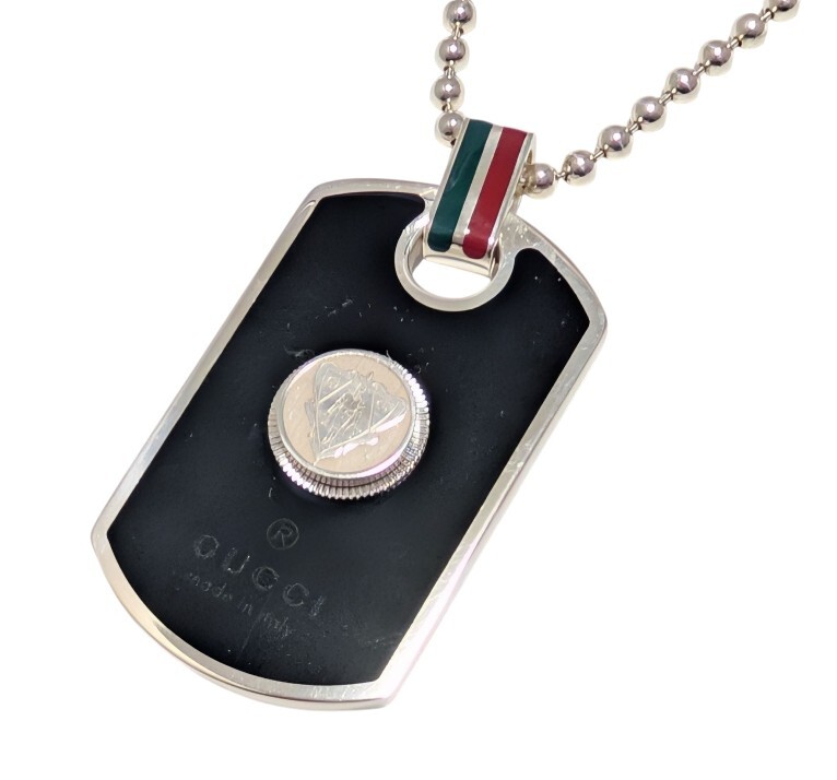> グッチ ネックレス ドッグタグ ペンダント クレスト ブラック シェリーカラー シルバー SV925 GUCCI 【中古】