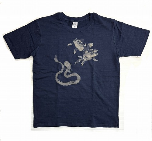 - [江戸てん]訳あり LLサイズ スラブTシャツ 和柄 抜染 国芳金魚づくし 紺