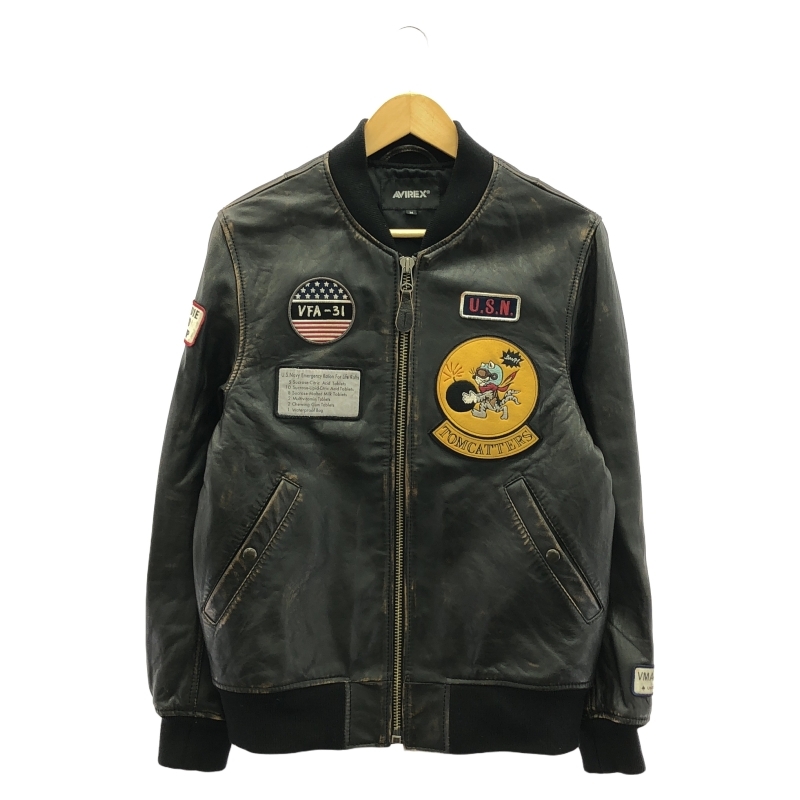 - 【中古】AVIREX エイジド レザー ブルゾン トムキャッターズ レザージャケット サイズM ブラック 783-2250010 アヴィレック[240017681294]