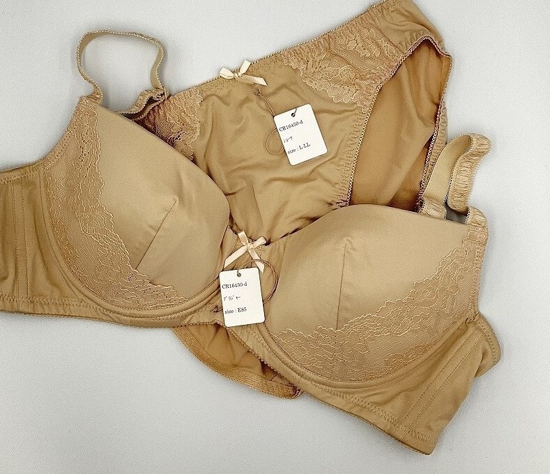 > CR16450 IB⑦【特価】新品 大きい ブラショーツセット E85/L~LL 1セット ベージュ レース 花柄 刺しゅう 3/4カップ レディース