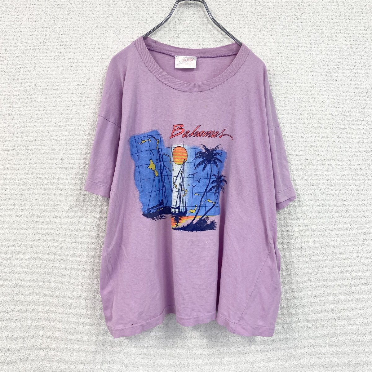 > 古着 used ~90s 半袖プリントTシャツ ヴィンテージ シングルステッチ 紫 パープル 50サイズ