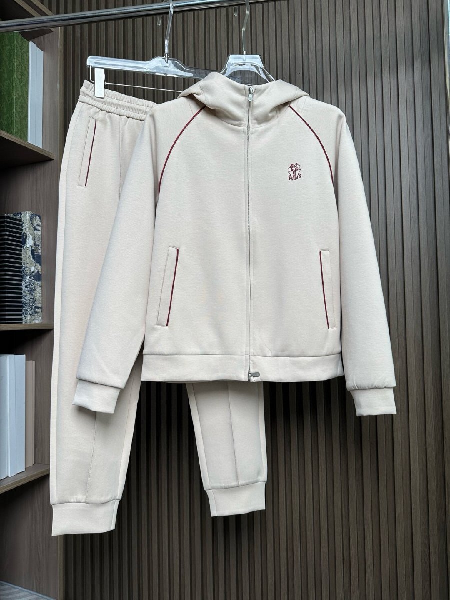 > ホワイトXL★送料無料★ブルネロクチネリ★メンズ スポーツウェア セットアップ, フード付き ジャケット&パンツ, ビジネスカジュアル