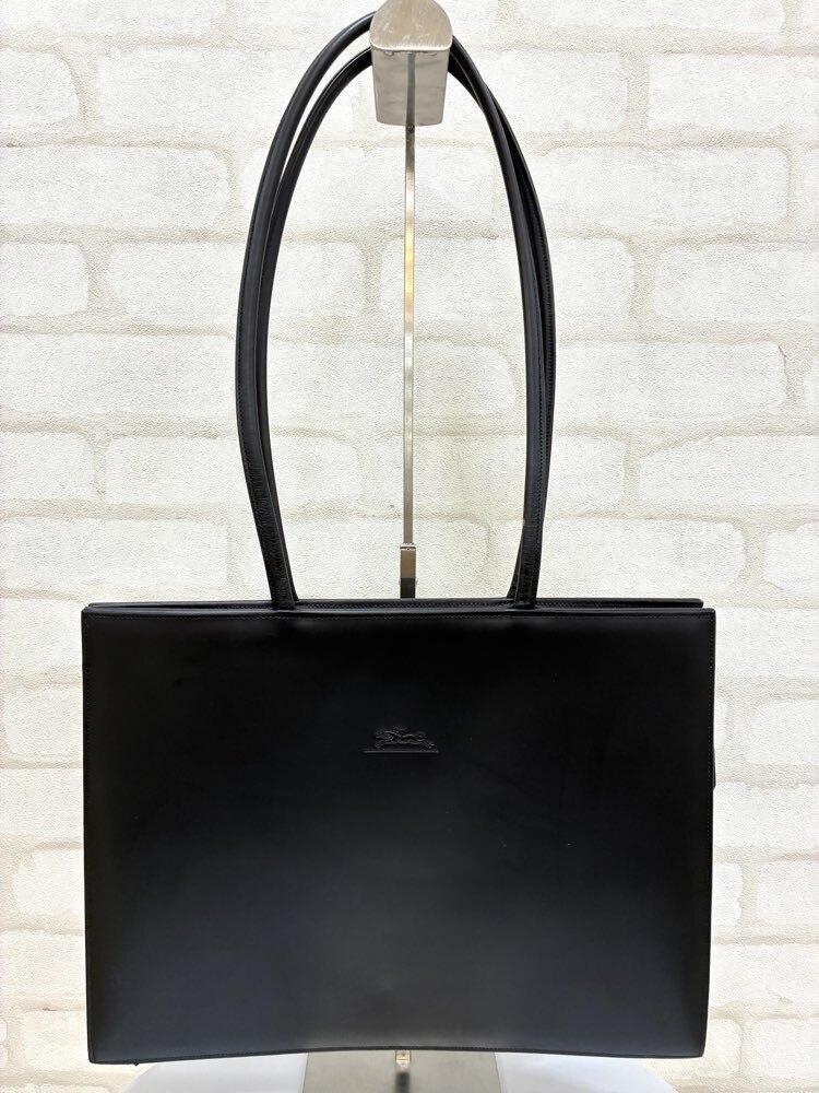 > (OH05581) ★美品★ Longchamp ロンシャン トートバッグ ブラック レザー 内側ポケット×2 保存袋あり