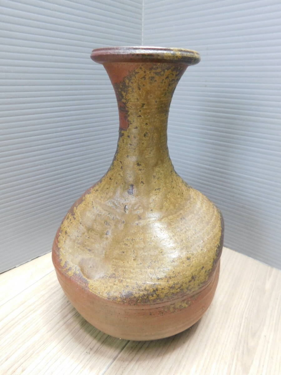 > 【人気陶芸作家 難波周作】備前焼 変形 壺 徳利 花器 花瓶 在銘 作家物 現代美術 約20cm/M408