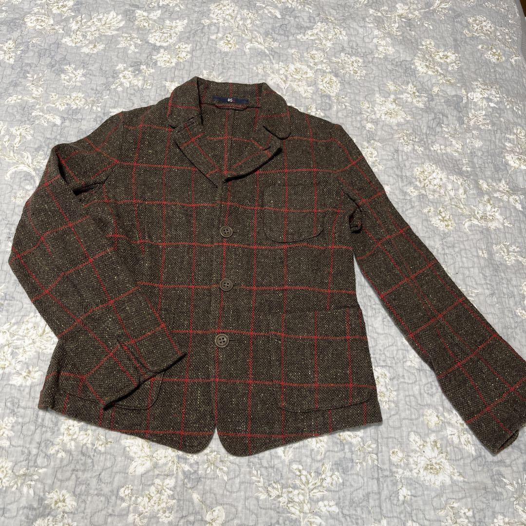 - 45R 45rpm チェック柄 ツイードジャケット テーラード コットン ブロックチェック 3ボタン レディース 茶色 ブラウン レッド