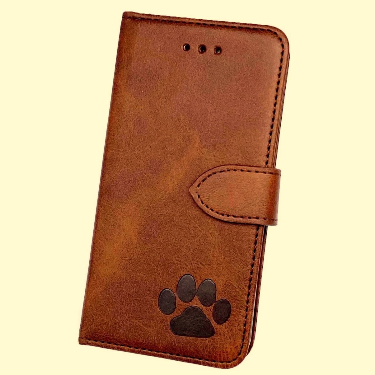 - iPhone 7/8/SE2/SE3 ブラウン 肉球焼き印!スムースレザー手帳型ケース