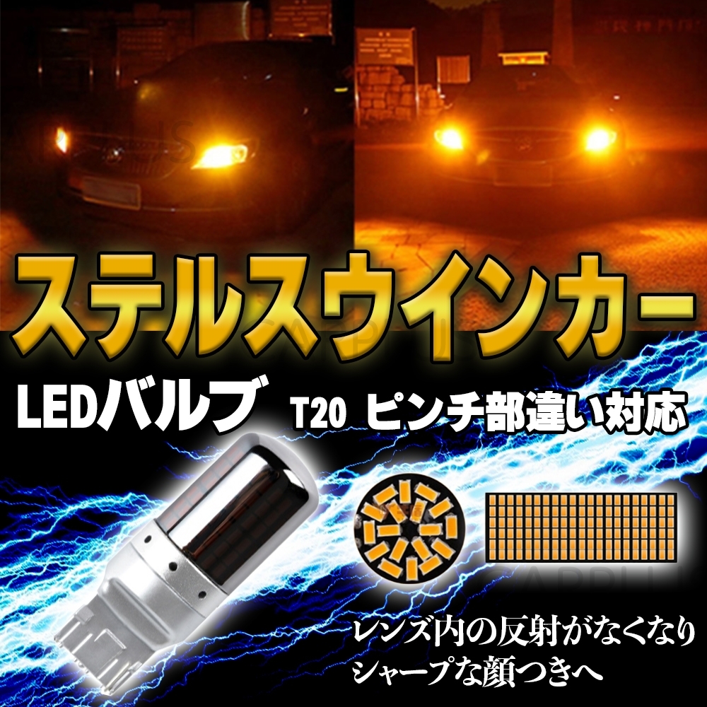 > LED アンバー ステルス 2個 ウインカー オレンジ バルブ ハイフラ 防止抵抗内蔵 シングル 12V 無極性 T20 ピンチ部違い SALE
