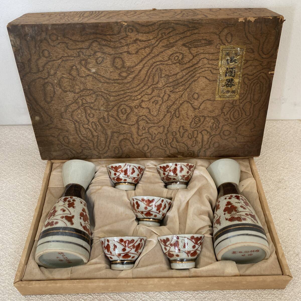 - E-1033 【同梱不可】980円~ 現状品 九谷焼 酒器 7点セット 九谷幸窯 お猪口 徳利 箱付き