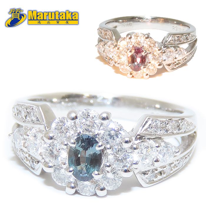 - アレキサンドライト ダイヤモンド リング 9号 Pt900 鑑別書 指輪 カラーチェンジ 0.20ct 0.58ct 6.4g 逸品質屋 尼崎