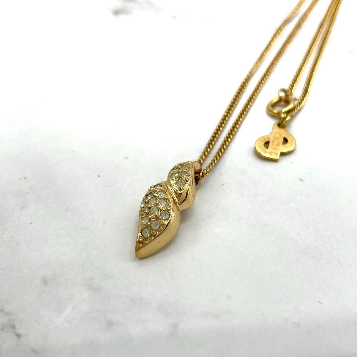 > 1円 【美品】Christian Dior クリスチャンディオール ヴィンテージ ネックレス ツイストモチーフ ラインストーン CDロゴ ゴールドカラー