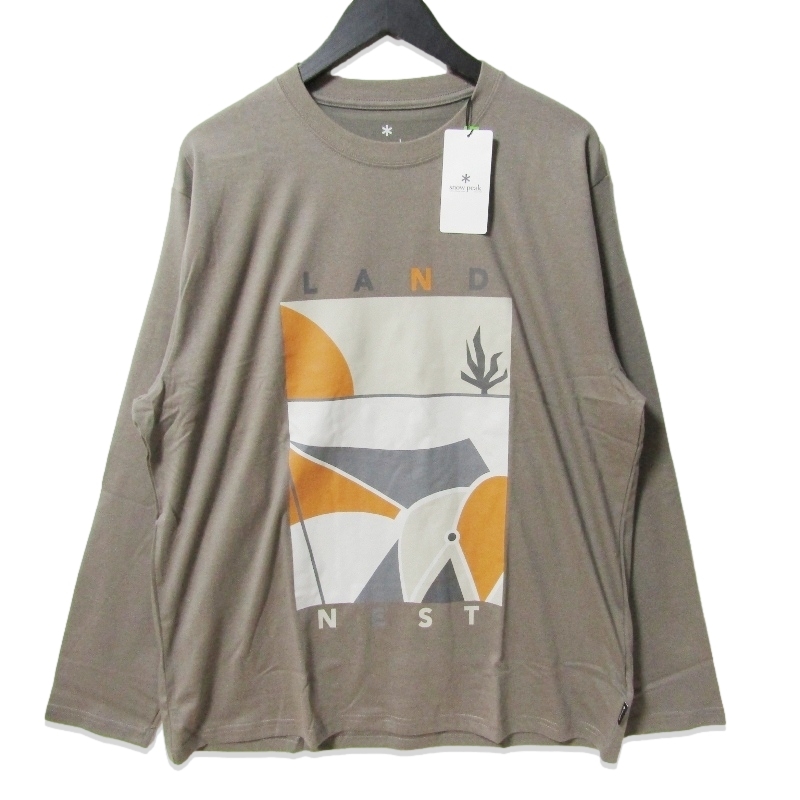 > 未使用 Snow Peak スノーピーク Land Nest Long Sleeve T-Shirt TS-24AU105 長袖Tシャツ プリント Tee Greige XL タグ付き 27111533