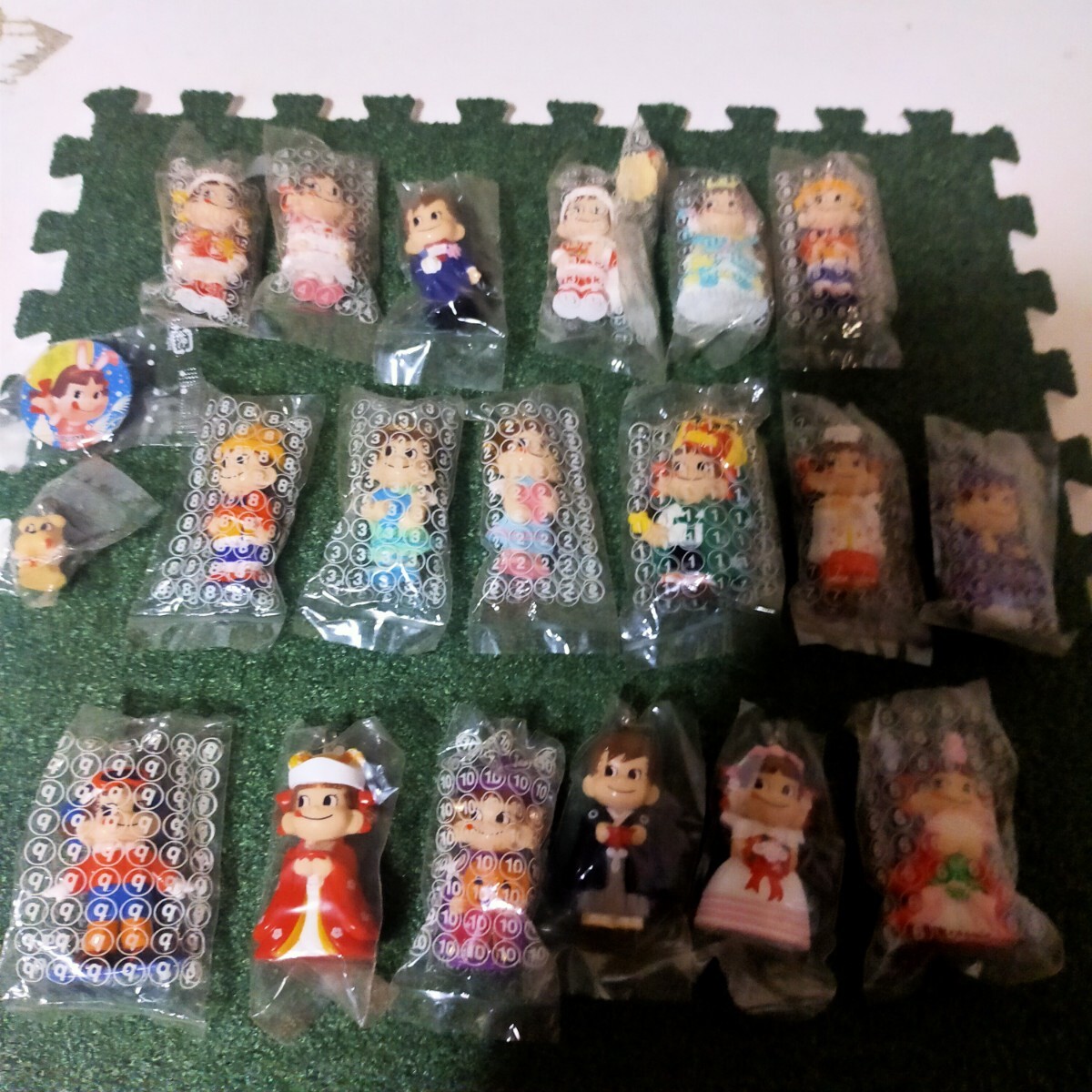 - 不二家 ペコちゃん ・ポコちゃん ミニミニマスコット18個セット・ ミニフィギュア コスチュームコレクション・ ぺこちゃん缶バッジ (ay