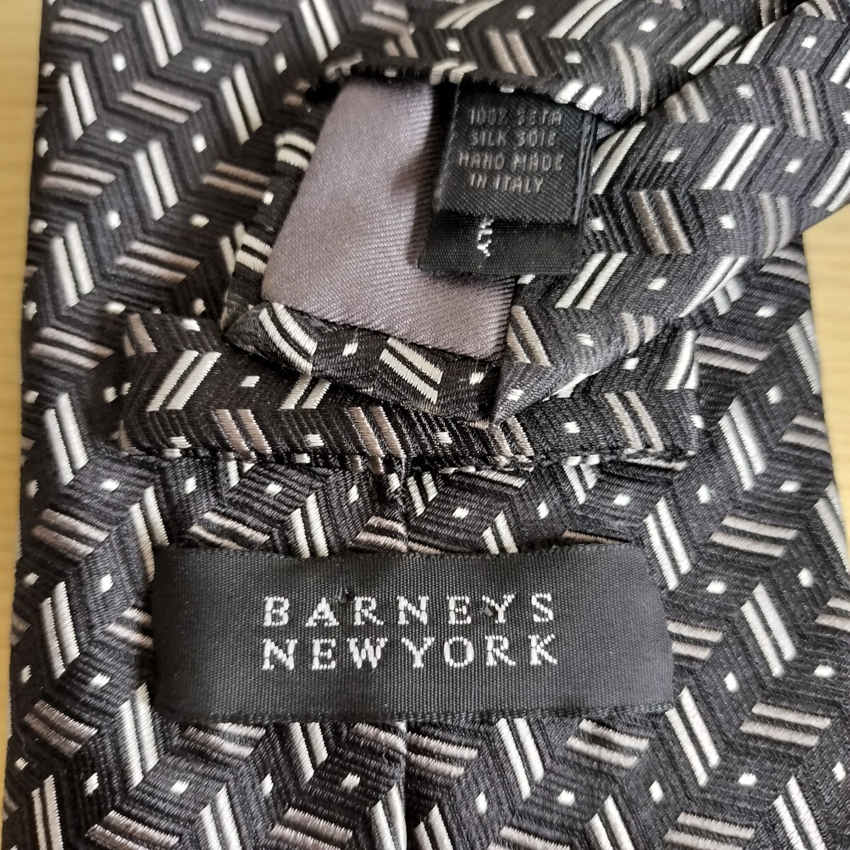 - バーニーズニューヨーク( BARNEYS NEW YORK)黒シルバー細線長方形模様ネクタイ