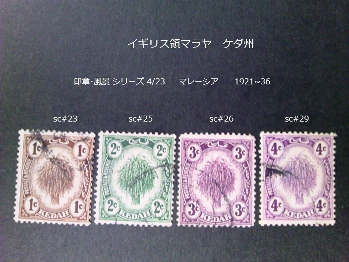 - 英領マラヤ ケダ州 印章・風景s マレーシア 1921~36 sc#23,25~6,29